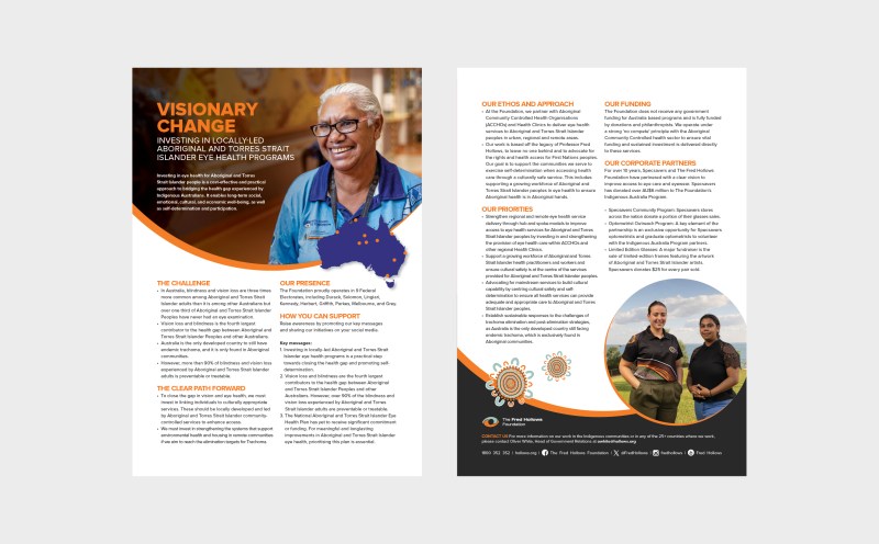 The Fred Hollows Foundation is an international organisation working towards eliminating avoidable blindness and improving Indigenous Australian health.